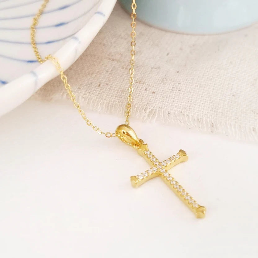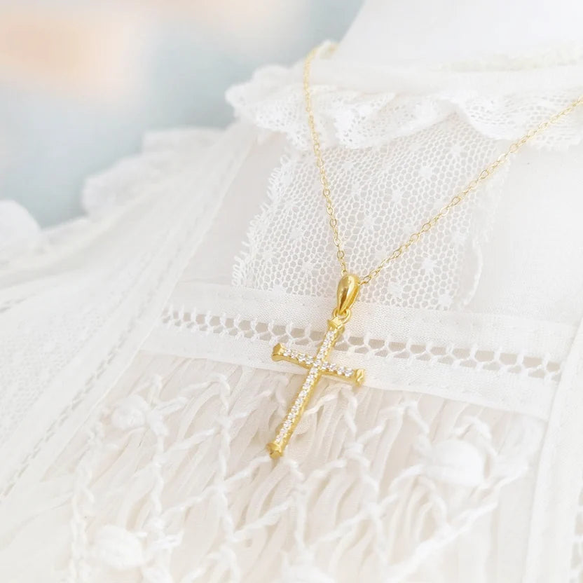 - Collar de Cruz de zircon de plata esterlina 925 con baño de oro 18k